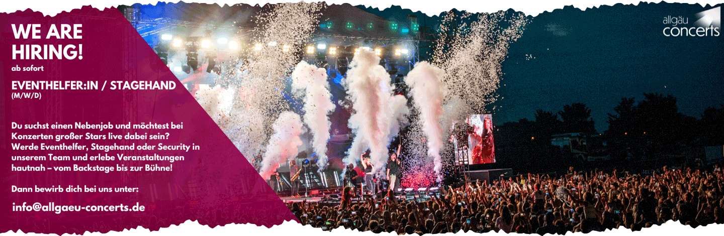 Mit durchschnittlich 60 Konzert-, Musical- und Open Air-Veranstaltungen im Jahr gehört Allgäu Concerts zu den größten „Örtlichen Veranstaltern“ im Raum Allgäu/Bodensee/Oberschwaben. In der täglichen Arbeit ist uns dabei die Förderung junger Künstler im Club-Segment genauso wichtig wie die qualitativ hochwertige Durchführung eines Open Air- Konzertes.