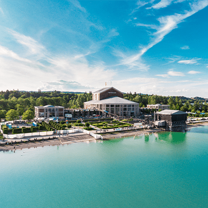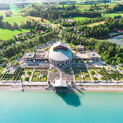 Der Barockgarten am Festspielhaus Füssen inmitten der beliebten Urlaubsregion Allgäu bietet eine romantische Kulisse am Forggensee und du hast einen direkten Blick in die Allgäuer Bergwelt. Nicht nur bei den Besucher:innen, auch bei den Künstler:innen genießt die Open Air Reihe eine besondere Beliebtheit. Das magische Ambiente des Barockgartens bietet den idealen Rahmen für lange Sommerabende im Freien mit deinen Lieblingskünstler:innen. Die zentrale Position der Bühne, die zum Teil im Wasser steht, sorgt dafür, dass du von jedem Platz aus eine gute Sicht hast.