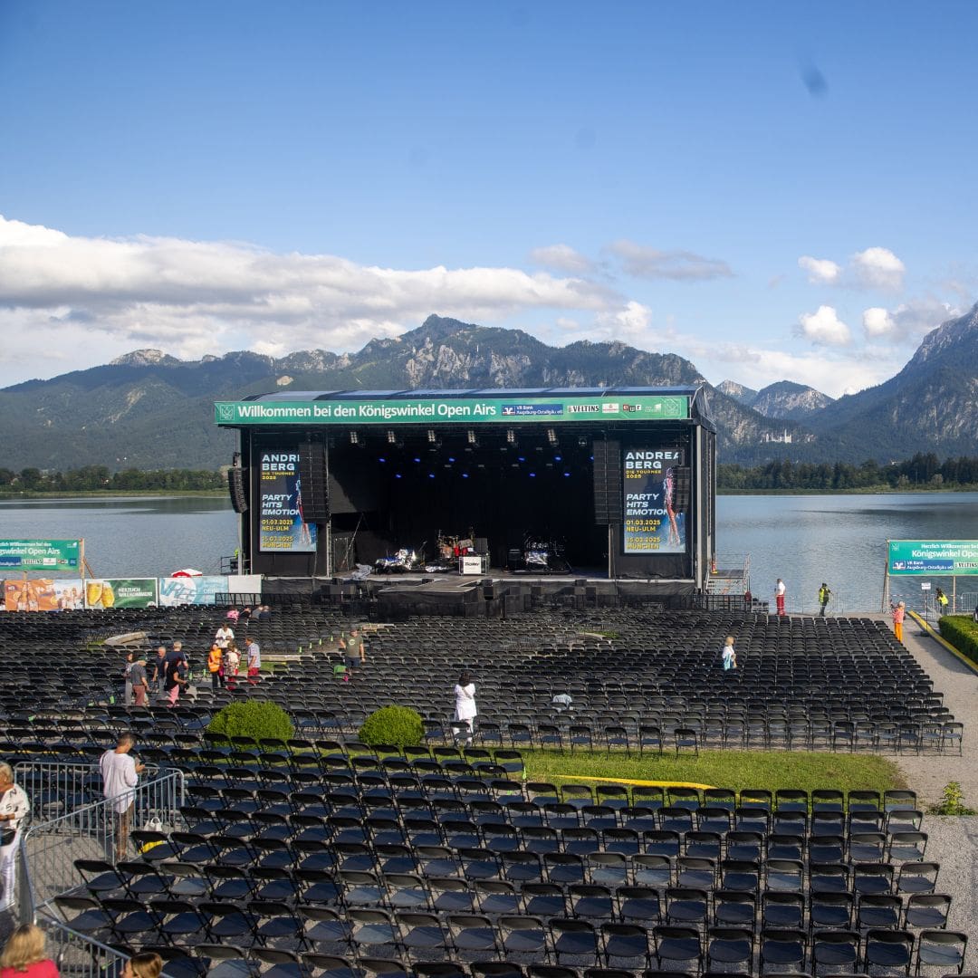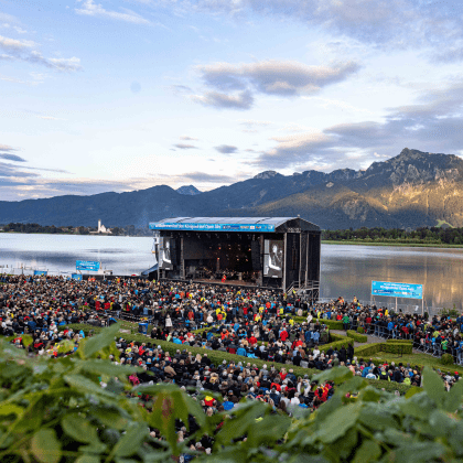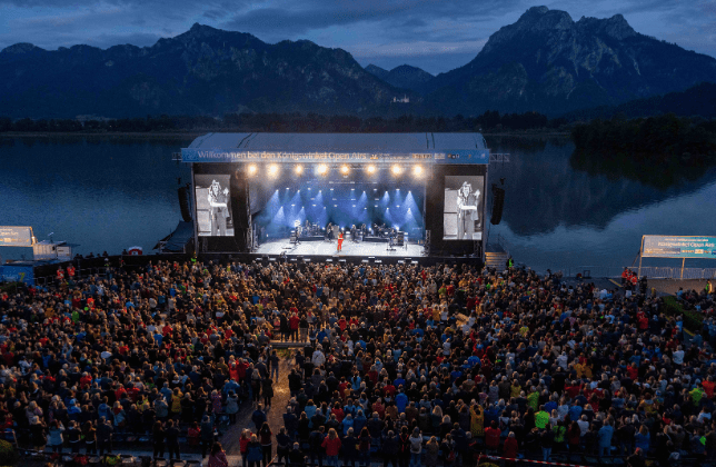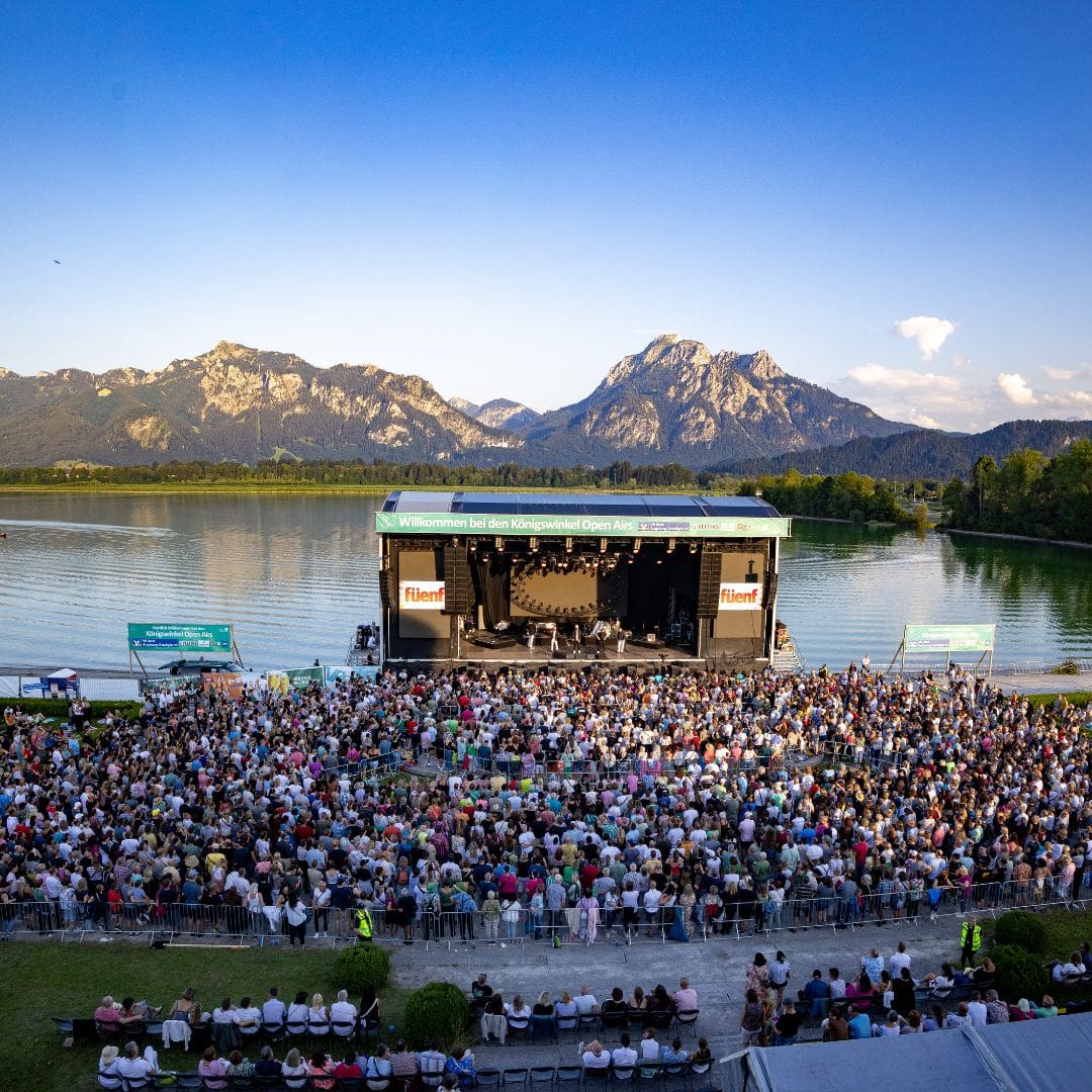 Die Königswinkel Open Airs gibt es nun seit 2015 und sie sind mittlerweile ein echtes Sommer-Highlight für alle Musikfans. Das Open Air Gelände im Barockgarten direkt am Festspielhaus Füssen besticht durch einen einmaligen Blick in die Allgäuer Berglandschaft und auf die weltberühmten Schlösser Neuschwanstein und Hohenschwangau. Ein ganz besonderer Effekt ist außerdem die Bühne: Sie steht zum Teil im Wasser des Forggensees und trägt so zum ganz besonderen Ambiente der Location bei.
