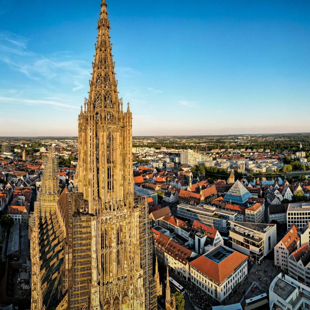 Mit einer Höhe von exakt 161,53 Metern ist das Ulmer Münster die zweithöchste Kirche weltweit. Es fasziniert rund eine Million Besucherinnen und Besucher jedes Jahr – durch seine Dimensionen, seine Kunst und seine Geschichte. Für den gotischen Sakralbau wurde 1377 der Grundstein gelegt und nach 513 Jahren harter Arbeit wurde die evangelische Kirche 1890 fertiggestellt. Ein Must-Do für jeden Besucher Ulms ist es, den Kirchturm zu besteigen und die mittelalterliche Stadt von oben zu bestaunen.
